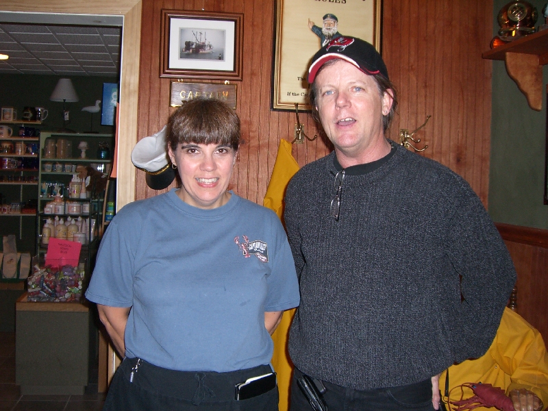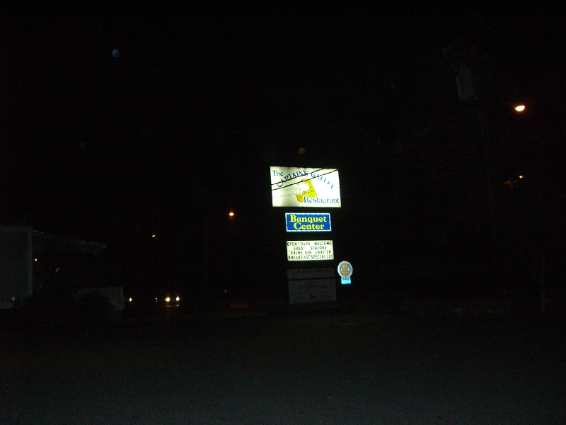 I started taking pictures on my way to the rental car garage there @ Manchester Airport and on the way to the Sheraton in nearby Nashua. This was the first time I had seen the Fall foliage in New England and I was immediately impressed by the beauty of the trees and leaves. After I got settled in and squared away I took a two hour trip to Old Orchard Beach Maine to get a lobster dinner. Unfortunately the original restaurant I wanted to eat at had already finished serving but it was right on the ocean so I took a photo looking out on the Atlantic. Then I went back up the road to the Captain's Galley and had a wonderful dinner there and got a picture taken of myself and my waitress. They had some great beer there called 'Shipyard'. It's brewed in nearby Portland. My trip to and from Maine was in the dark and I would have liked to have gotten a better look at the countryside but that's ok.. I'll return.