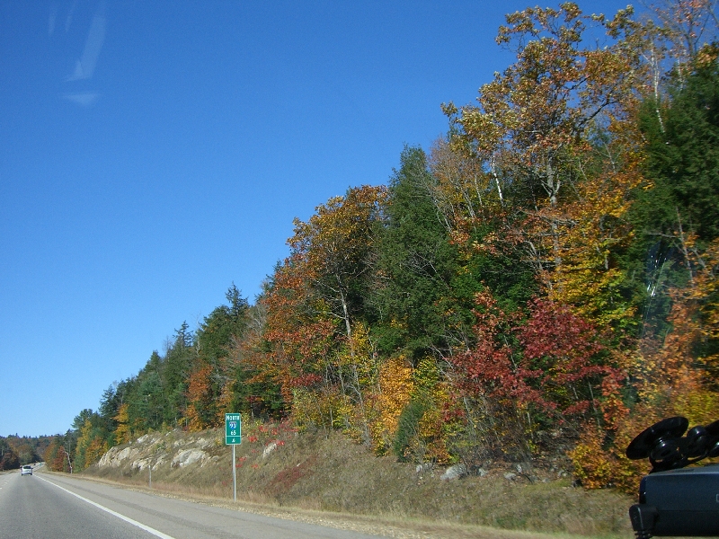 On my second day of the trip I headed out of Nashua northbound for the White Mountains area of New Hampshire. The foliage was very pretty and it wasn't too long before I got into the mountains. As you can see the weather was beautiful. I got to the Cannon Mountain View Motel very easily. After I got unpacked I headed out to do some exploring. It's a very picturesque part of the country. During the winter this is a major snow skiing destination which is another good reason to come back up here. I did a little mountain hiking and had a good time experiencing the natural beauty up close. It was Friday nite in Franconia and my motel had the restaurant and tavern that was the locals favorite hangout. They had a band from Portland ME that played some real good rhythm & blues. This was definitely the 'IN' place to be and I had a real good time. As you can see by the last picture it got nice & frosty that nite.
