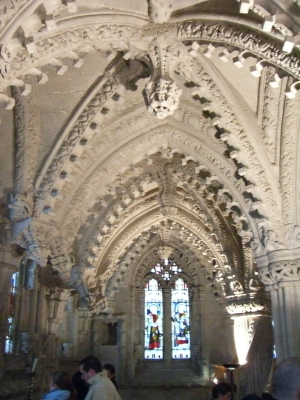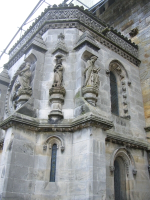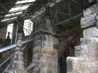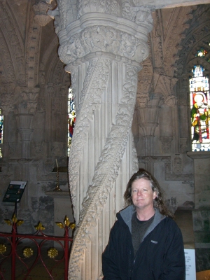 Rosslyn Chapel is an extraordinary building that was founded in 1446 by Sir William St Clair.. part of a larger project that was never completed the Chapel stands as a unique building with complex detail and artistic design.. with a storied history that one can study for many hours you have to see it in person to really get an appreciation for all the work that went into it's construction.. and there are many conspiracy theories that emanate from what possibly lies beneath it's ancient foundations.. and links to the Knights Templar are quite evident and substantial.. Bobby's interest in visiting came from listening to a late nite radio talk show.. and of course most of you know about the connection in the movie 'The DaVinci Code'.