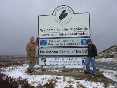 The Highlands of Scotland are where beautiful glens meet majestic mountains and quiet rivers.. mysterious moors and deep lochs are just but a few of the wonderous natural aspects of this romantic and adventurous land.. here you'll see images of some beautiful Scottish countryside.. much of it covered in snow.. the Sadler brothers encountered every type of precitpitation there is during their trip: rain - sleet - snow - and hail.. and temperatures hovered in the low 30's.. but being from the South and knowing the long hot summer will be quickly upon them the cool weather was welcome.